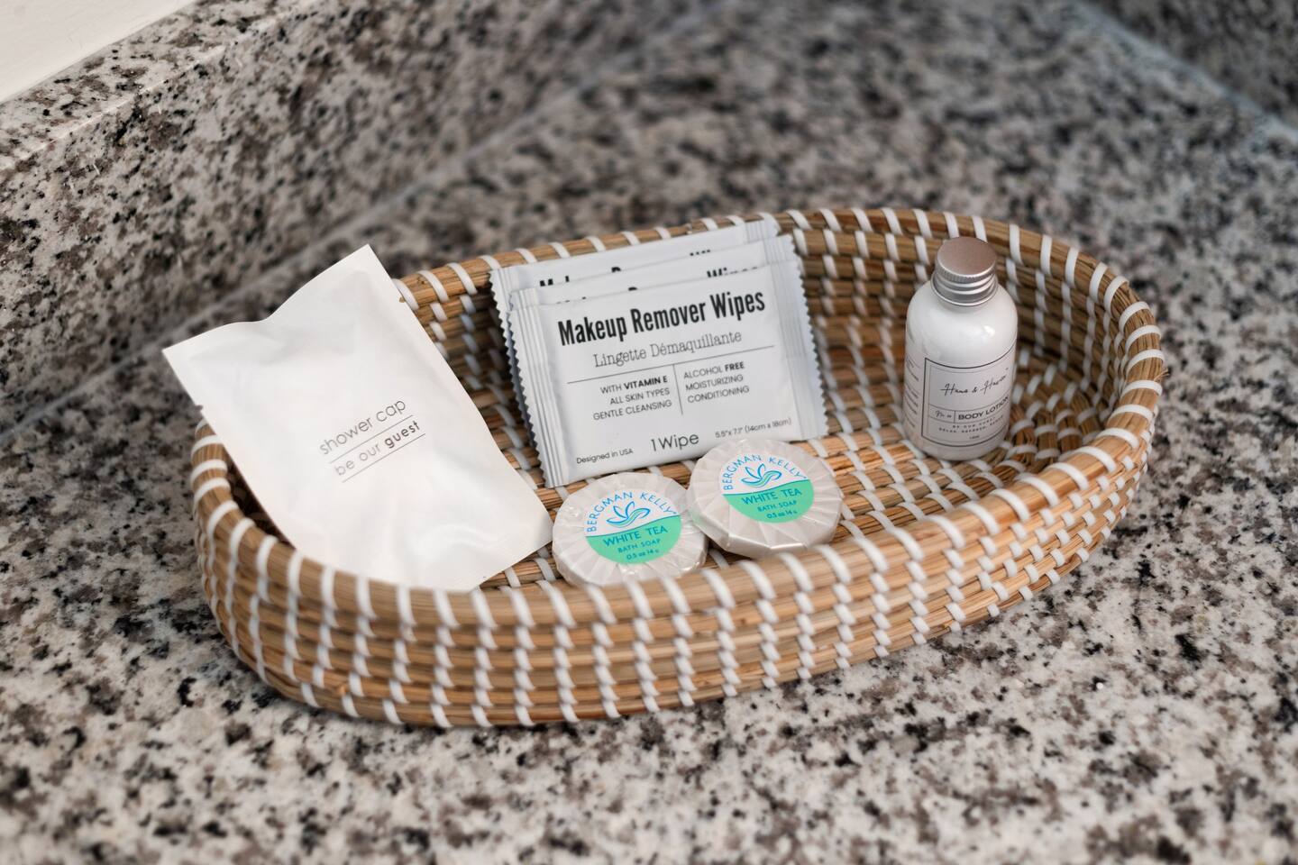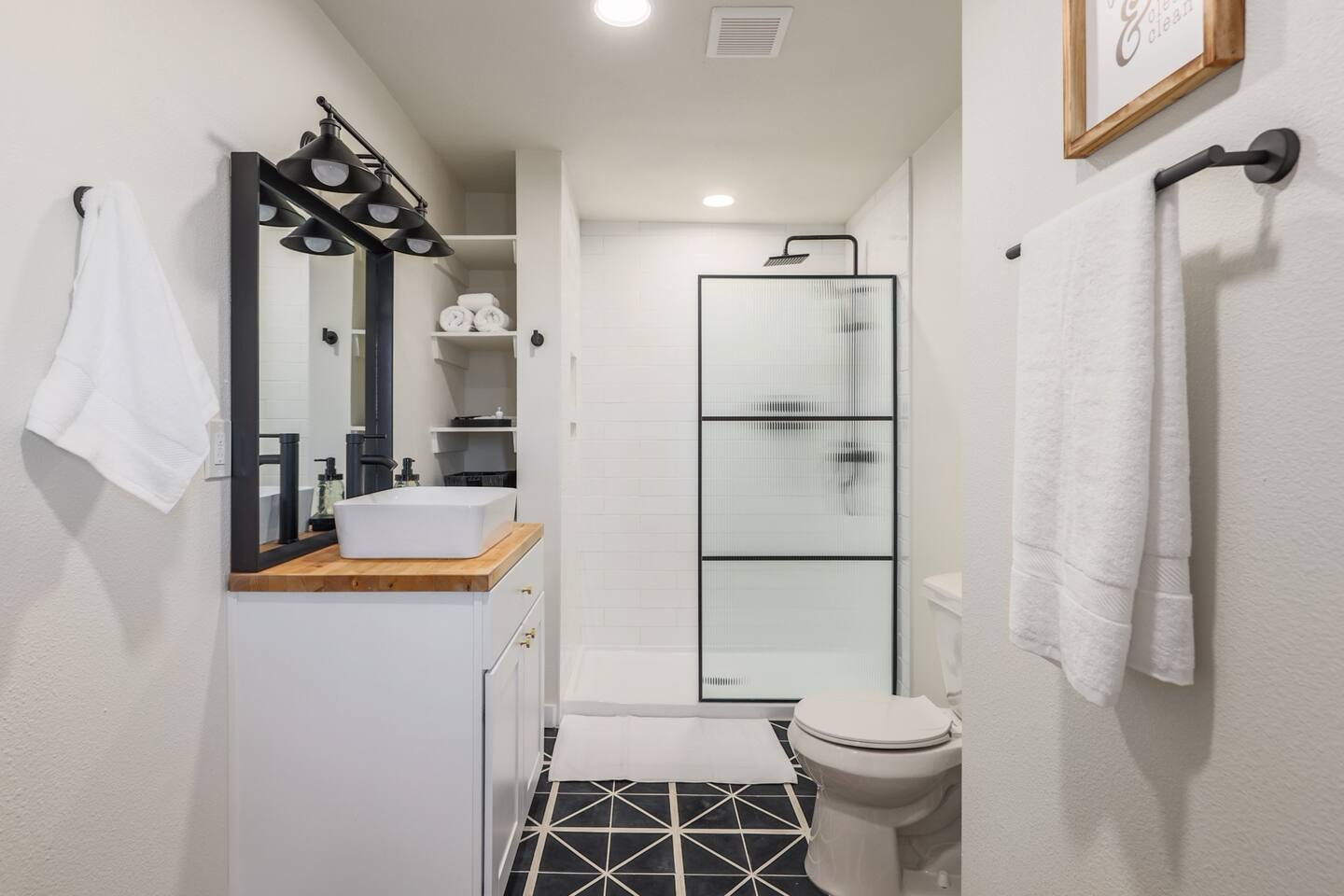 This home features three full bathrooms, fully stocked with essential toiletries and fresh towels.